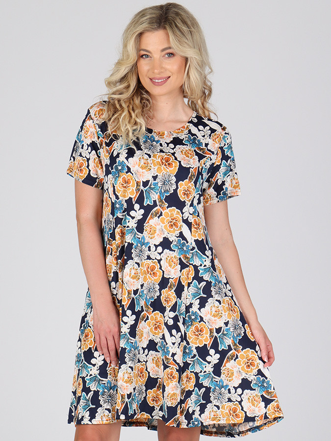 Stylové a elegantní dámské letní šaty s výrazným potiskem, které zaujmou na první pohled. Jsou ušity z lehké a splývavé látky, která je ideální do horkých letních dnů. Díky příjemnému materiálu se budete cítit komfortně a zároveň nádherně žensky.