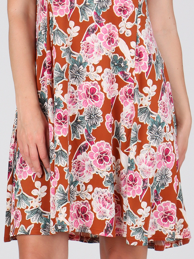 Stylové a elegantní dámské letní šaty s výrazným potiskem, které zaujmou na první pohled. Jsou ušity z lehké a splývavé látky, která je ideální do horkých letních dnů. Díky příjemnému materiálu se budete cítit komfortně a zároveň nádherně žensky.