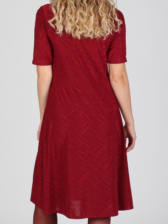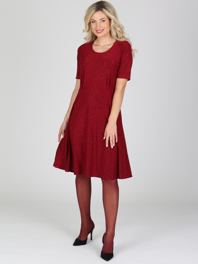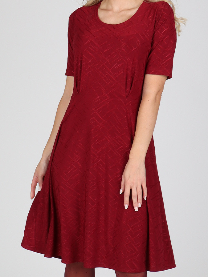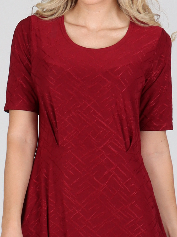 • sofistikovaný střih: záhyby na bocích, rozšířená sukně, kulatý výstřih